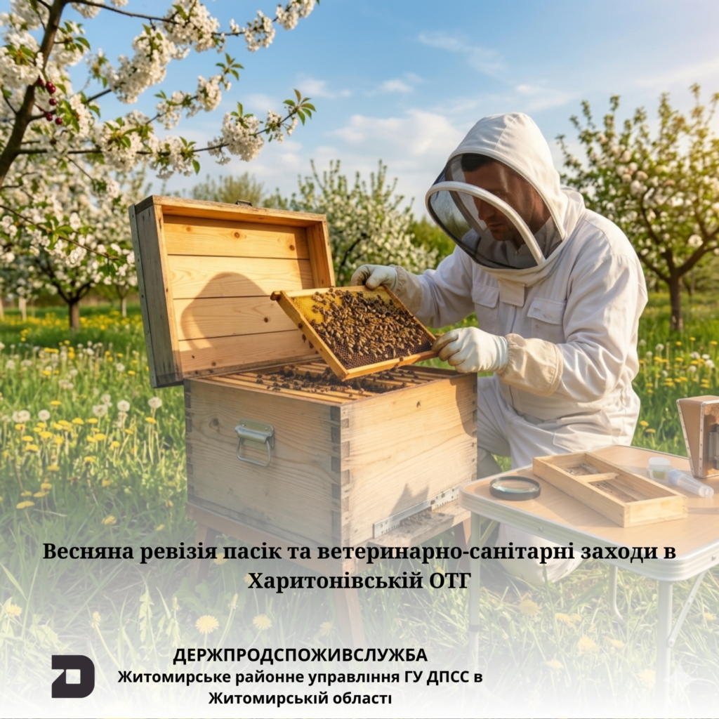 Житомирське районне управління Головного управління Держпродспоживслужби в Житомирській області нагадує: успішний сезон починається зі здорової бджолосім’ї. З метою запобігання поширенню інфекційних захворювань та підтвердження ветеринарно-санітарного стану пасік, розпочинається щорічна весняна ревізія.