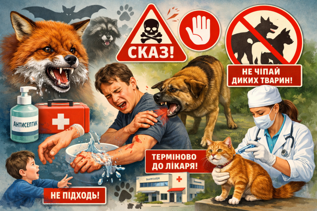 🔹 Укус тварини — найпоширеніший шлях зараження. Навіть невелика рана або подряпина може бути небезпечною.
