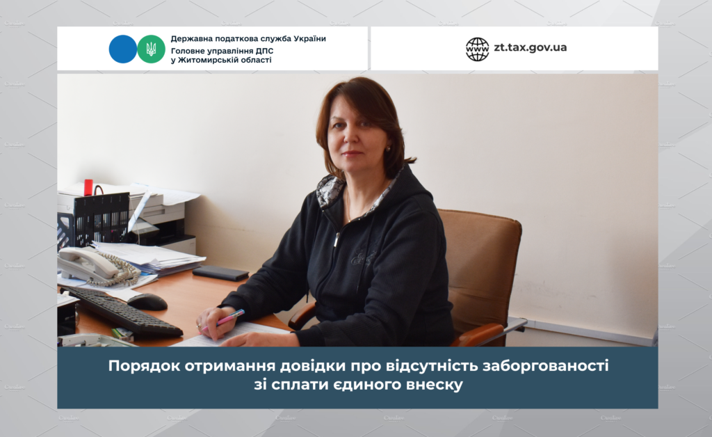 Про порядок отримання довідки про відсутність заборгованості зі сплати єдиного внеску, у коментарі медіа розповіла заступник начальника відділу погашення боргу з фізичних осіб та заборгованості з ЄСВ управління по роботі з податковим боргом Головного управління ДПС у Житомирській області Катерина Сімян.