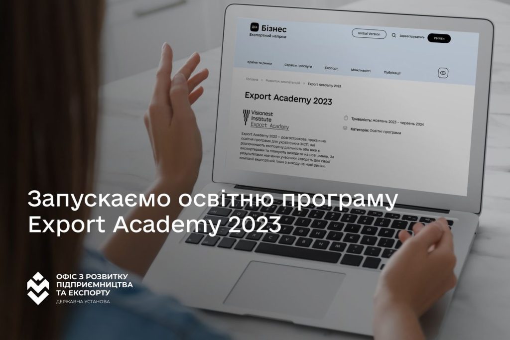 Офіс з розвитку підприємництва та експорту у співпраці з Visionest Insistute (Естонія) запрошують українських експортерів із усіх галузей виробництва на довгострокову практичну навчальну програму Export Academy 2023.