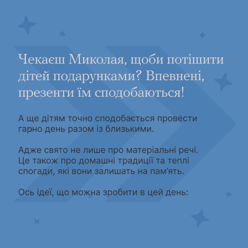 Щоби нагадати — День святого Миколая не лише про подарунки. Це можливість розповісти дітям про добрі справи та навчити робити їх. Можливість провести час якісно і так, що враження про нього залишаться на усе життя.