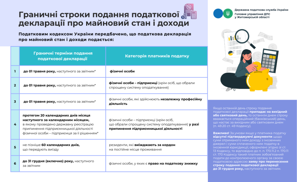Граничні строки подання податкової декларації про майновий стан і доходи