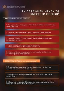 – при виході із приміщень, пересуванні сходинами багатоповерхівок або до споруди цивільної оборони (сховища) дотримуватись правила правої руки (як при русі автомобільного транспорту) з метою уникнення тисняви. Пропускати вперед та надавати допомогу жінкам, дітям, літнім людям та інвалідам, що значно скоротить терміни зайняття укриття;