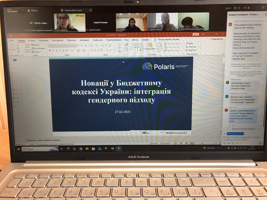 Фахівець із соціальної роботи комунальної установи «Центр надання соціальних полслуг» Харитонівської сільської ради КІРІЧЕНКО Наталія взяла участі у засіданні платформи “З питань гендерної рівності” Всеукраїнської асоціації ОТГ на тему «Новації у бюджетному кодексі України: інтеграція гендерного підходу».
